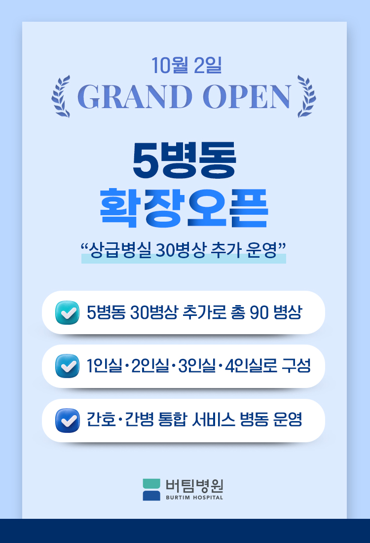 [버팀병원 수원점] 10월2일, 간호·간병통합서비스 5병동 확장 오픈